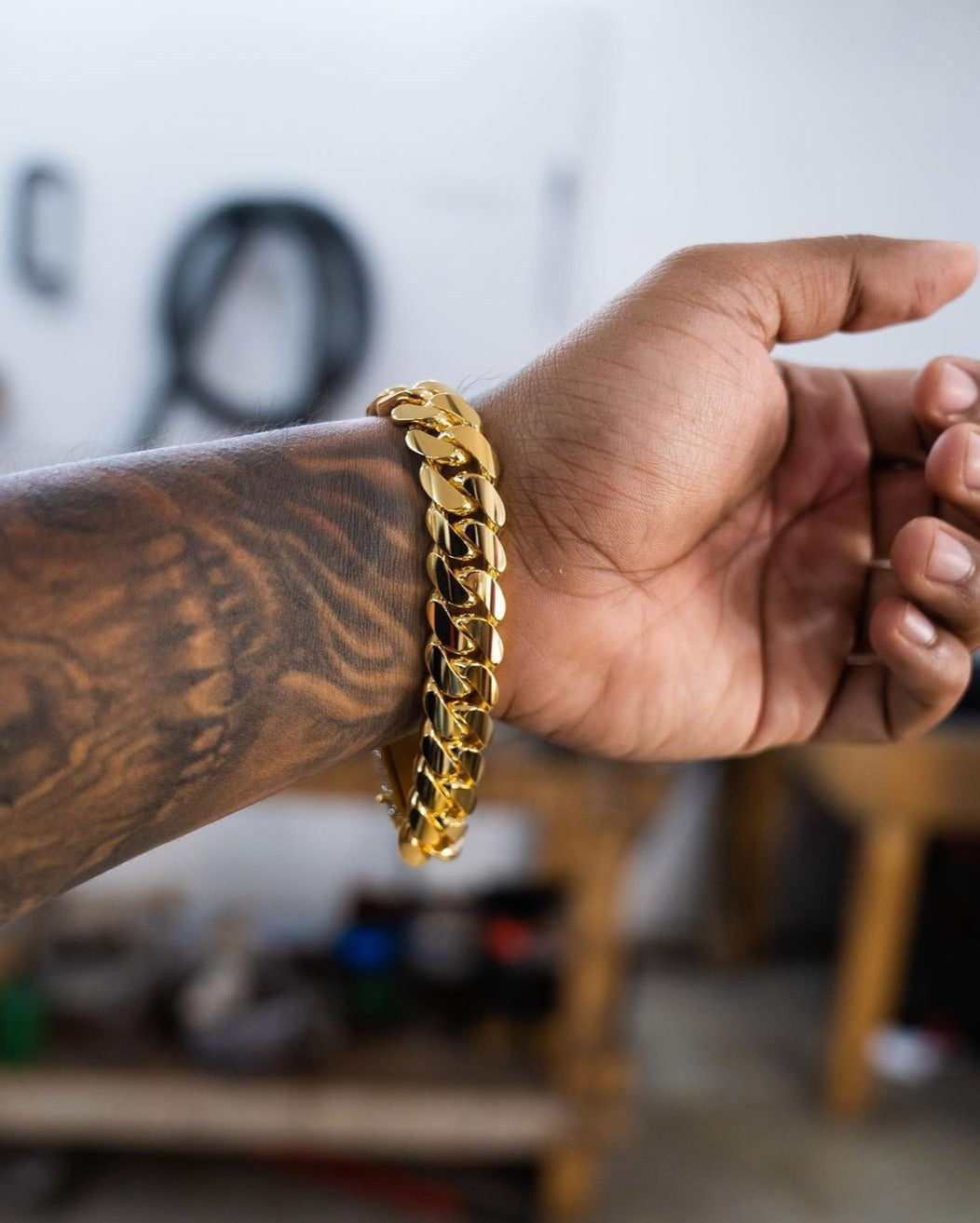 Gental Gems by Karat Kings | Solid 12mm Miami Cuban Link Bracelet with Iced Lock | Gold Micron Plated on Sterling Silver Bracelet with AAA+ Quality Swarovski Diamonds | Men's Jewelry | With Certificate of Authenticity and Hallmark