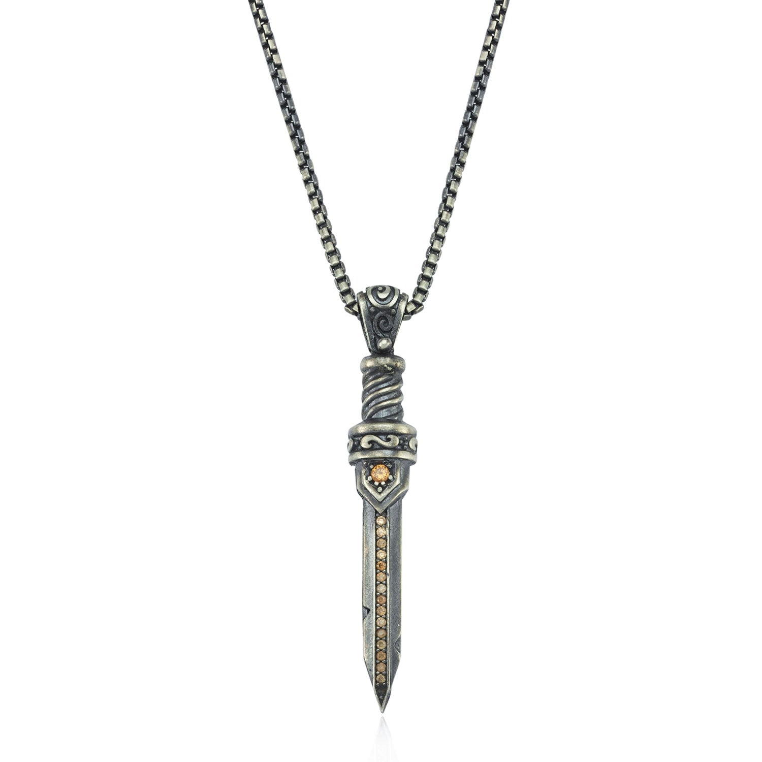 - PRODUCT DETAILS: This is an Exclusive Pure Sterling Silver Oxidized Sword Pendant studded with Zircons. Designed for ALPHA MEN