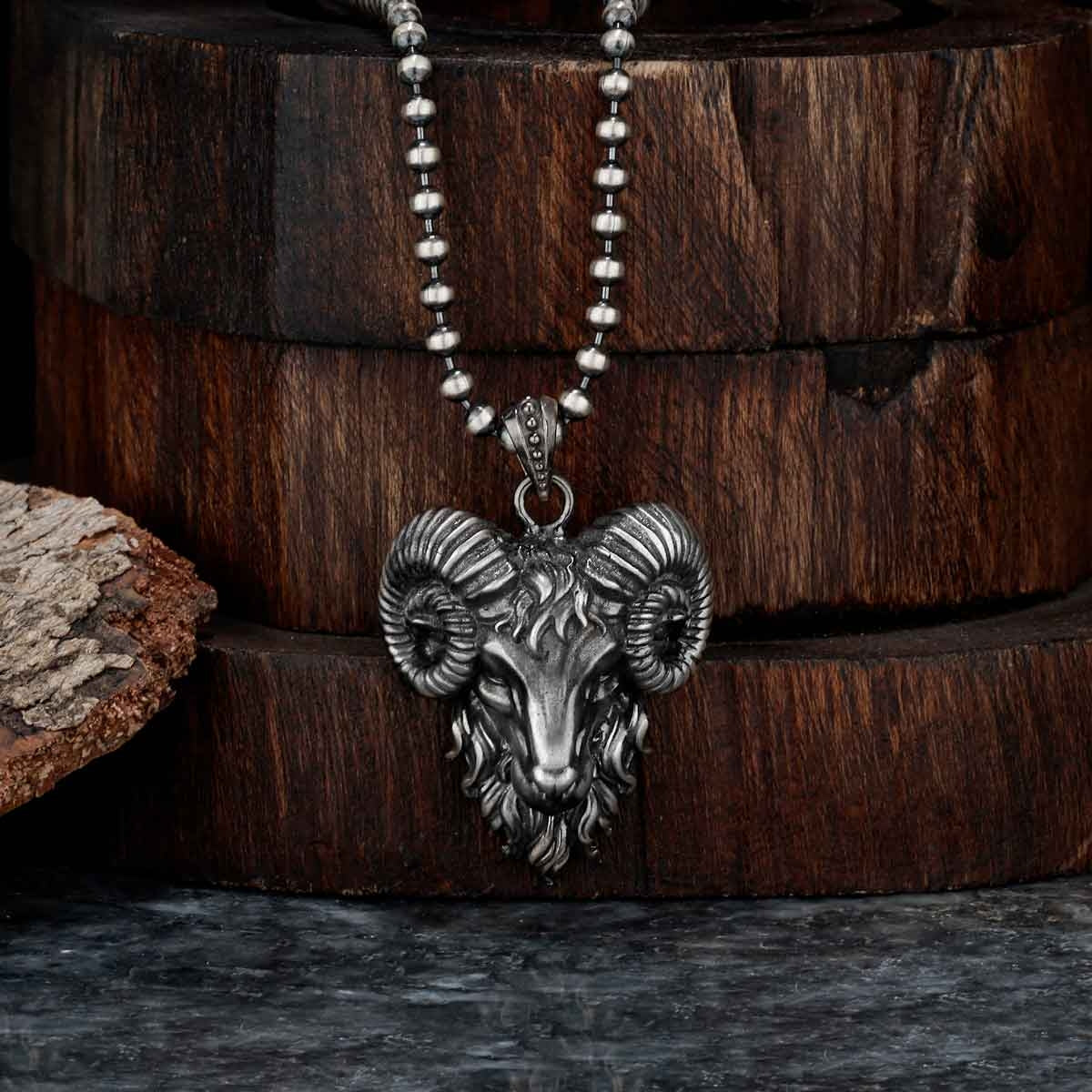 Gental Gems by Karat Kings | Unique Designed Horned Ram Pendant for Aries Zodiac for Men | Sterling Silver Oxidized Pendant | Men's Jewelry | With Certificate of Authenticity and Hallmark