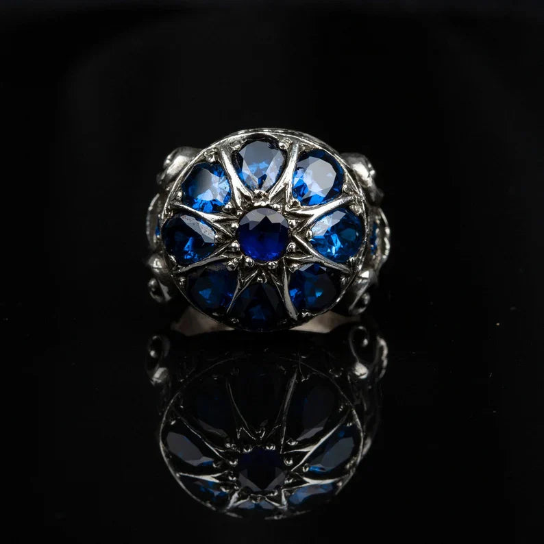 Gental Gems by Karat Kings | Unique Turkish Style Ring with Victorian Blue Zircon | Sterling Silver Oxidized Ring | Men's Jewelry | With Certificate of Authenticity and Hallmark