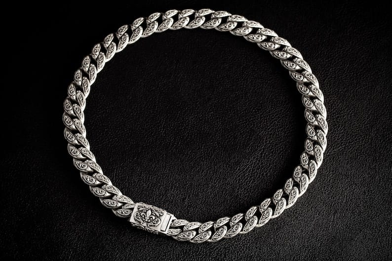 - PRODUCT DETAILS: This is an Exclusive Floral Cuban Link, Sterling Silver Bracelet.