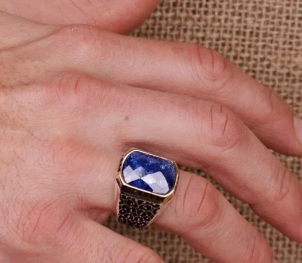 Gental Gems by Karat Kings | Unique Turkish Style Ring with Natural Blue Lapis Lazuli | Sterling Silver Oxidized Ring | Men's Jewelry | With Certificate of Authenticity and Hallmark