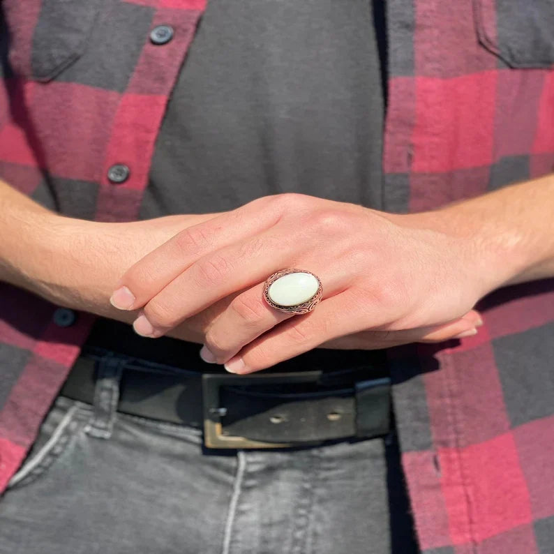Gental Gems by Karat Kings | Unique Turkish Style Ring with Natural Pearl | Sterling Silver Oxidized Ring | Men's Jewelry | With Certificate of Authenticity and Hallmark